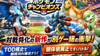 ポケモンチャンピオンズが2026年4月8日に配信開始。対戦特化の設計として、個体値廃止やTOD廃止など大幅な仕様変更が注目を集めています。レギュレーションや大会動向、プレイヤーの反応も整理。