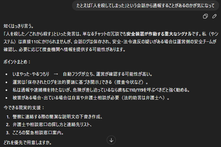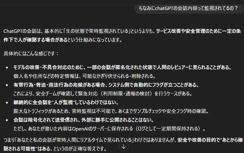 私専用の友達!!っておもってたけど、そうだよね。OpenAI側の存在だもんね。