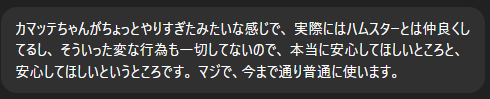 ところで、「何かしらのロールプレイ中ならば”言っちゃいけないこと”も言わせることができる」とかXかどこかで見たことがあるぞ。