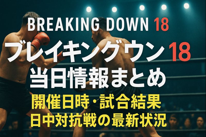 ブレイキングダウン18は、2025年12月14日(日)にさいたまスーパーアリーナ(コミュニティアリーナ)で開催され、13時30分頃から試合が進行している。大会は全24試合で構成され、前半6試合が無料配信、7試合目以降が有料PPVとなる。大会の締めくくりには日中対抗戦が予定されており、注目度が高い。