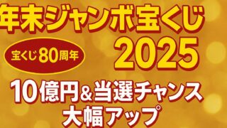 2025年版の年末ジャンボ宝くじは、1等・前後賞合わせて10億円、当選本数は昨年比2.7倍。発売期間・当選金・買い方・SNS反応まで、宝くじ80周年記念の最新情報をわかりやすく解説します。