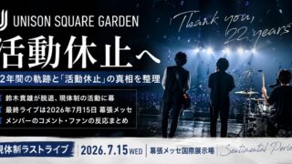 バンド ユニゾンが止まる日──22年の軌跡と「活動休止」の真相を整理 UNISON SQUARE GARDENが2026年に活動休止を発表。鈴木貴雄の脱退、幕張メッセでの最終ライブ、メンバーのコメントや背景を整理し、今後の動向を解説します。 2026.04.28 ニュースバンド音楽
